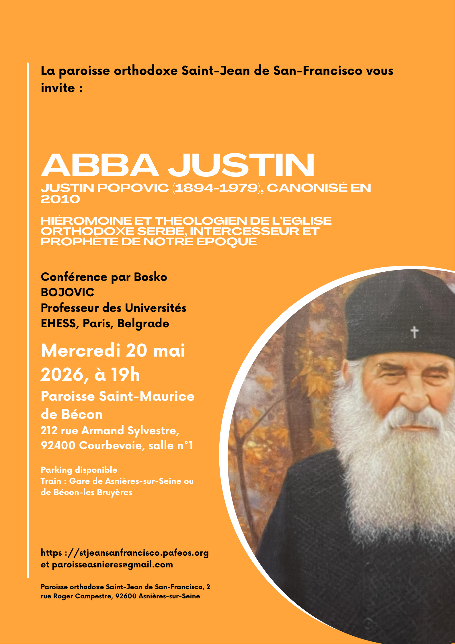 Lien Permanent pour cet article : https://stjeansanfrancisco.pafeos.org/conference-sur-saint-justin-popovic-1894-1979-le-20-mai-2026-a-19-h/